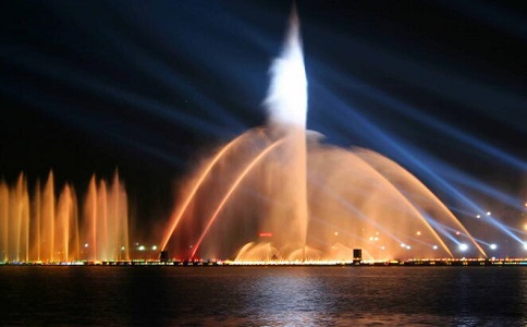 昆明波光跳泉:它是一種高科技的水景藝術,噴泉噴射時,水柱呈拱形,全身光滑,水柱不飛濺不散射,沿著設定的軌跡噴射...